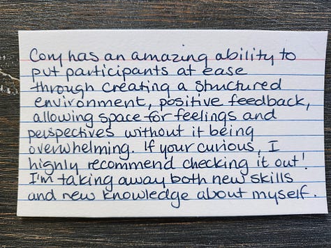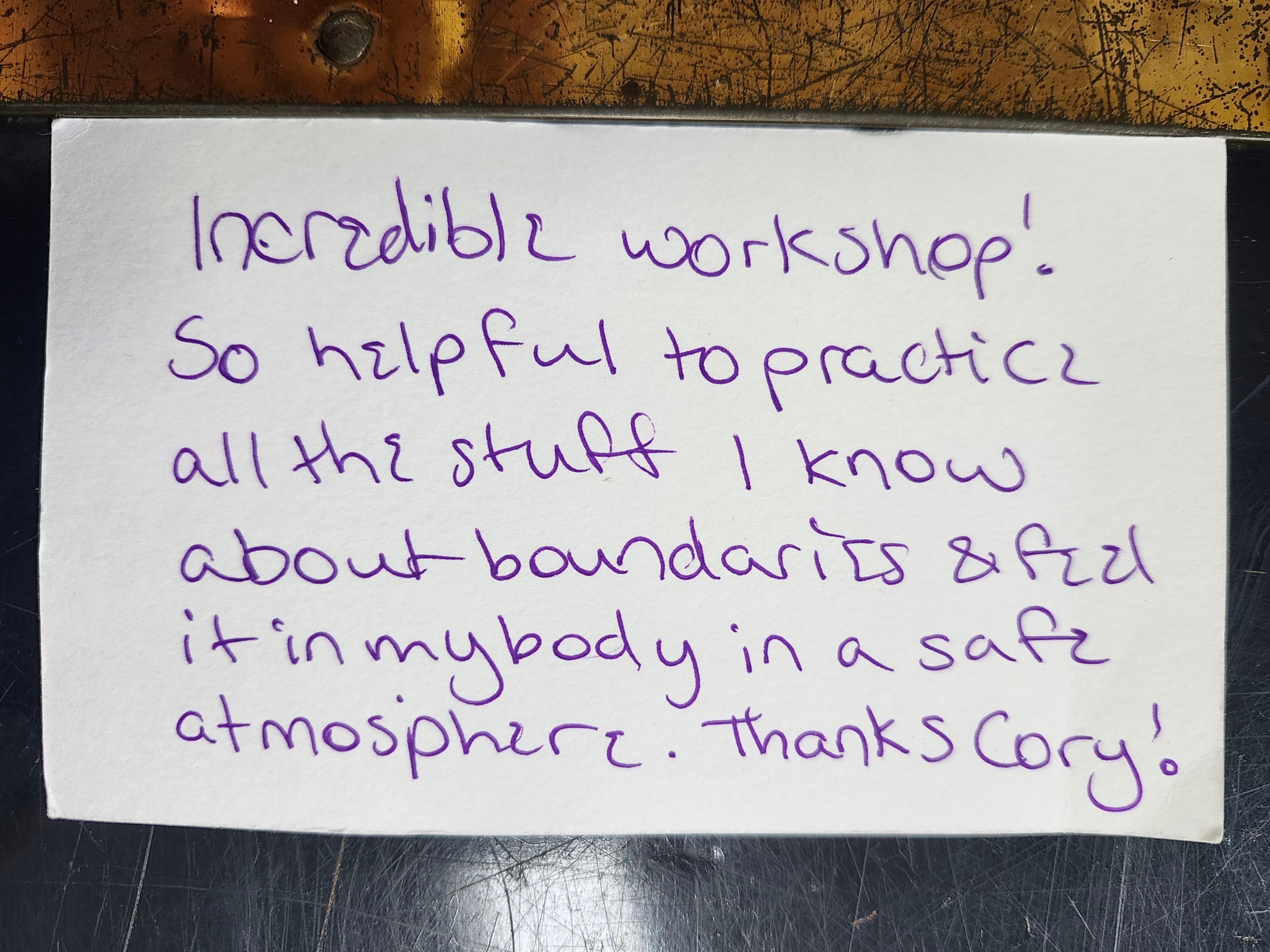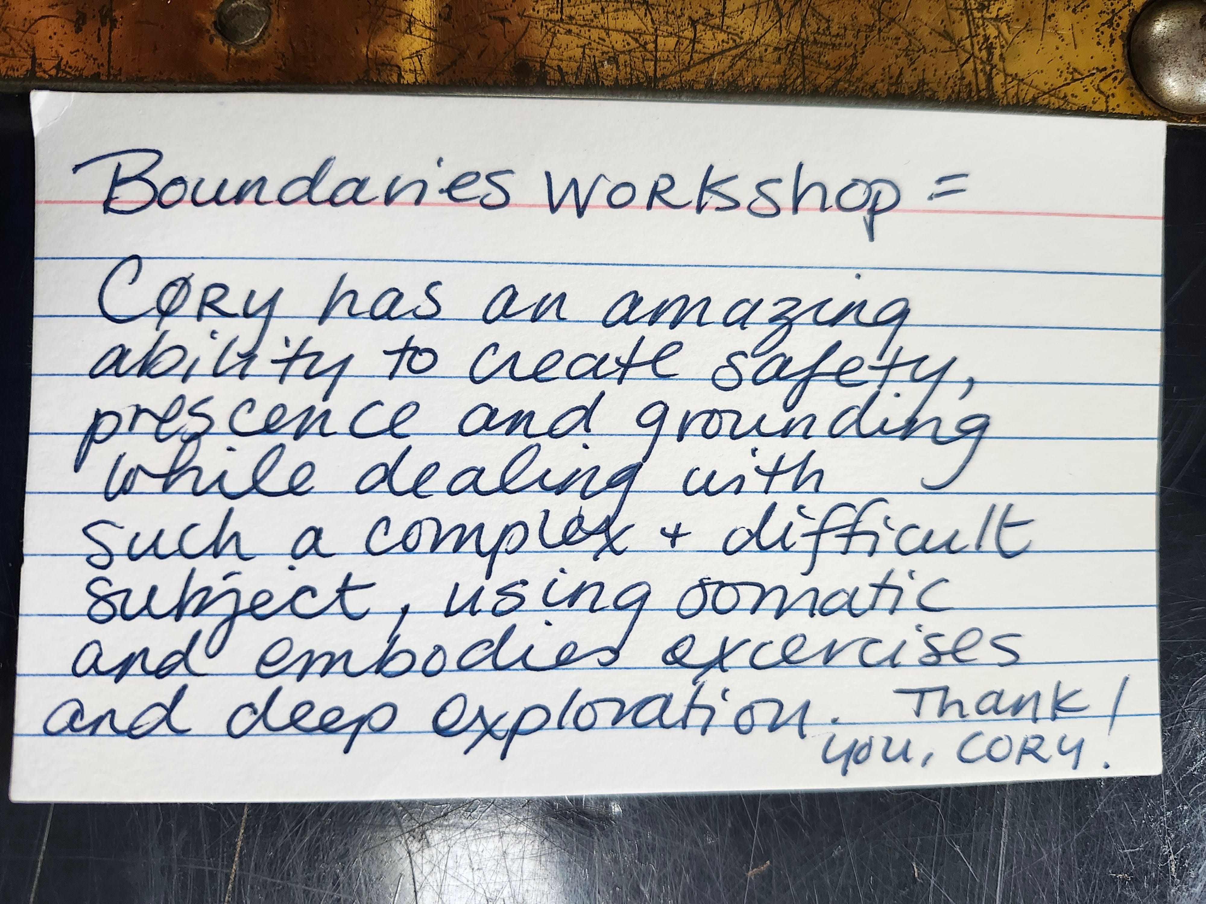 These *in-person* events are interactive workshops, facilitated by Cory, to experience and practice setting and receiving boundaries.